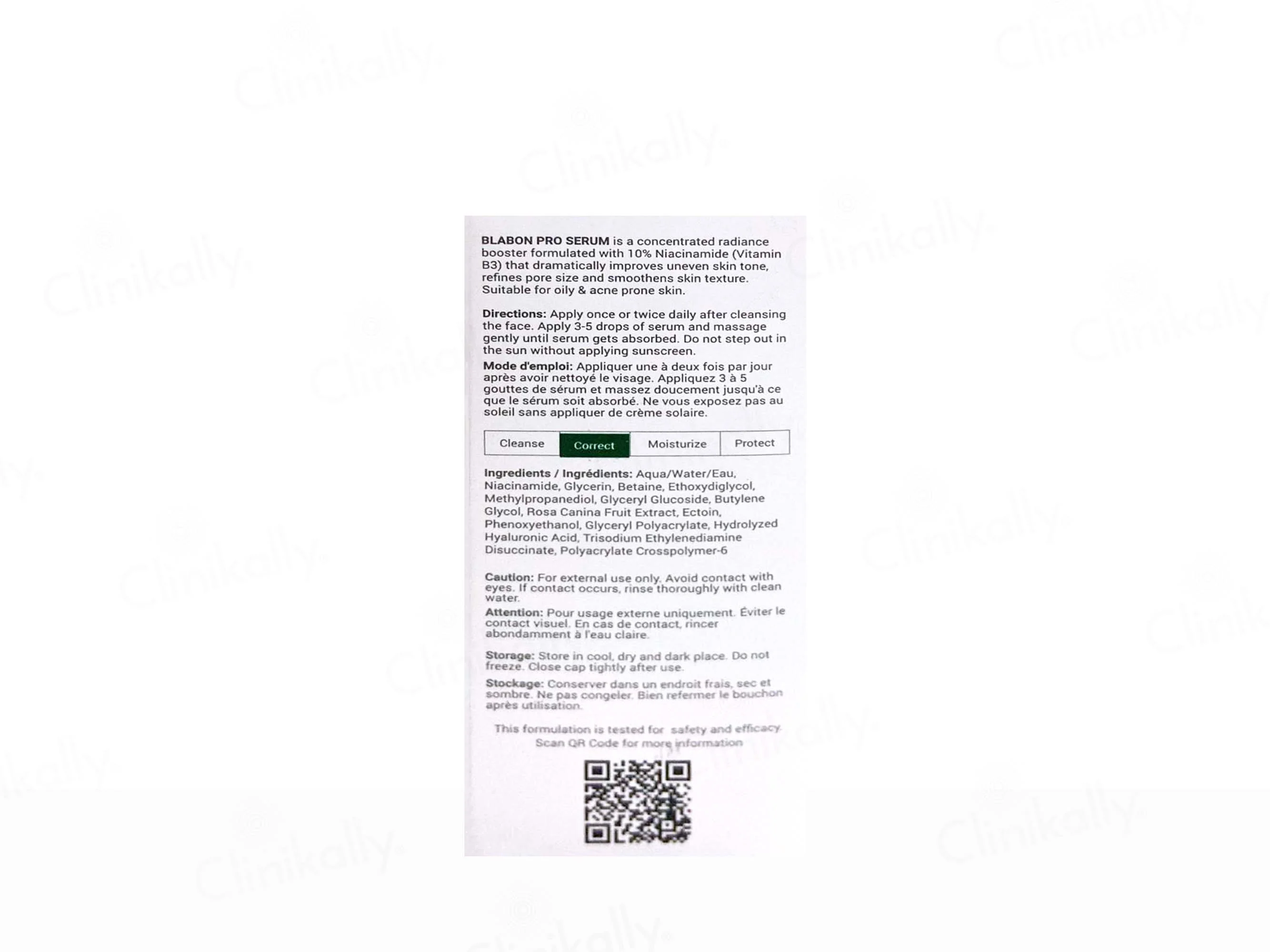 Blabon Pro Serum is a concentrated radiance booster powered by 10% niacinamide (vitamin B3) for clearer, brighter, oil-balanced skin. Dermatologically tested, this lightweight face serum refines enlarged pores, fades acne marks and smoothens uneven texture without clogging pores. Enriched with glycerin, betaine, hyaluronic acid and rosehip fruit extract, it hydrates and strengthens the skin barrier while controlling excess sebum. Ideal for oily and acne-prone skin, Blabon Pro leaves your complexion smoother, refined and visibly glowing with consistent daily use results.