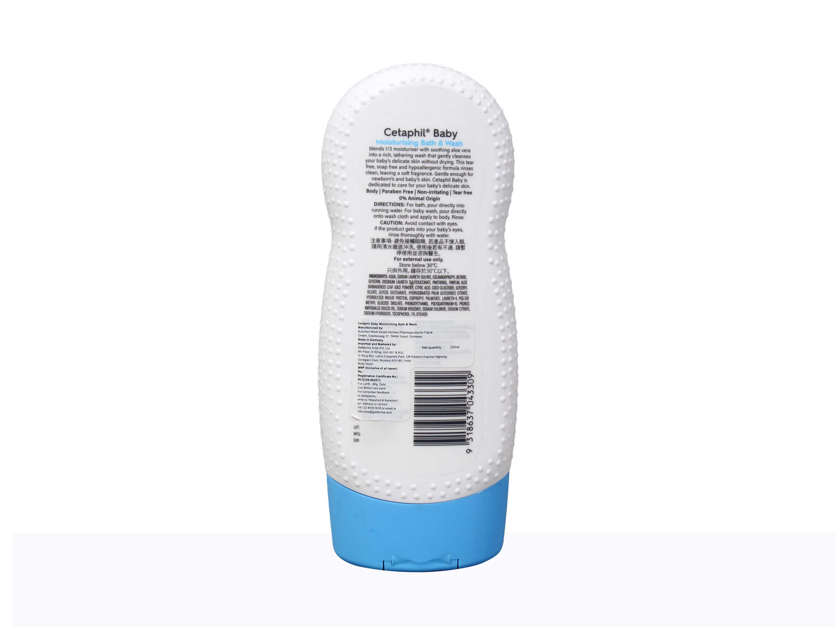 Cetaphil Baby Moisturising Bath & Wash is a gentle, dermatologist-tested cleanser specially designed for your baby’s delicate skin. Enriched with Aloe Vera and Almond Oil, it provides deep nourishment while maintaining natural moisture balance. The tear-free, soap-free, and hypoallergenic formula cleanses softly without drying, leaving the skin smooth and hydrated. With a 1/3 moisturiser blend, it ensures a rich, creamy lather that rinses clean while offering a soft fragrance. Perfect for newborns and sensitive skin, Cetaphil Baby Bath & Wash helps keep your baby’s skin healthy, soft, and protected every day.
